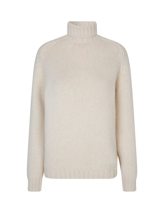 Glencoe Ladies Roll Neck Sweater, Almond White, Geelong lambswool