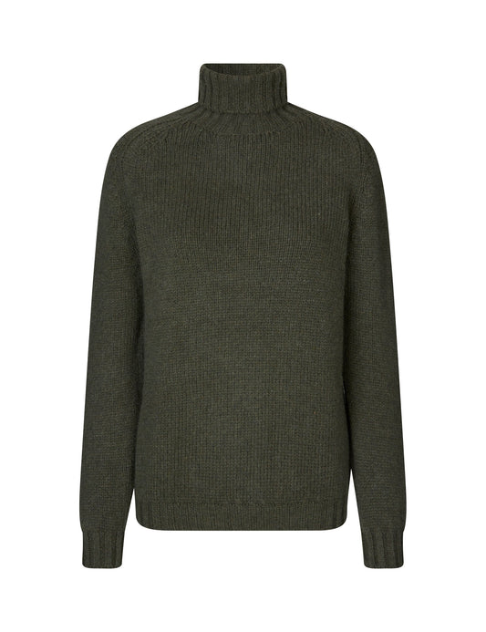 Glencoe Ladies Roll Neck Sweater, Loden Green, Geelong lambswool