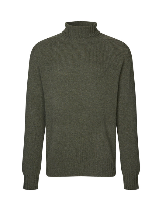 Ballater Mens Roll Neck Sweater, Loden Green, Geelong lambswool