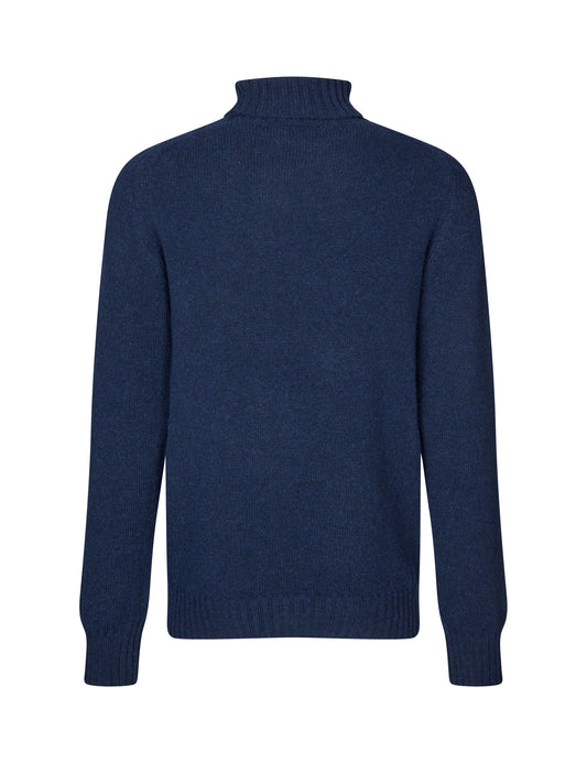 Ballater Mens Roll Neck Sweater, Cosmos Blue, Geelong lambswool