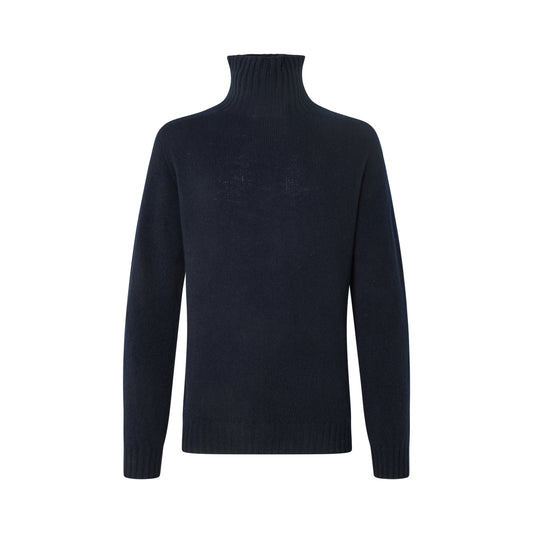 Glencoe Ladies Roll Neck Sweater, Nero Navy, Geelong lambswool