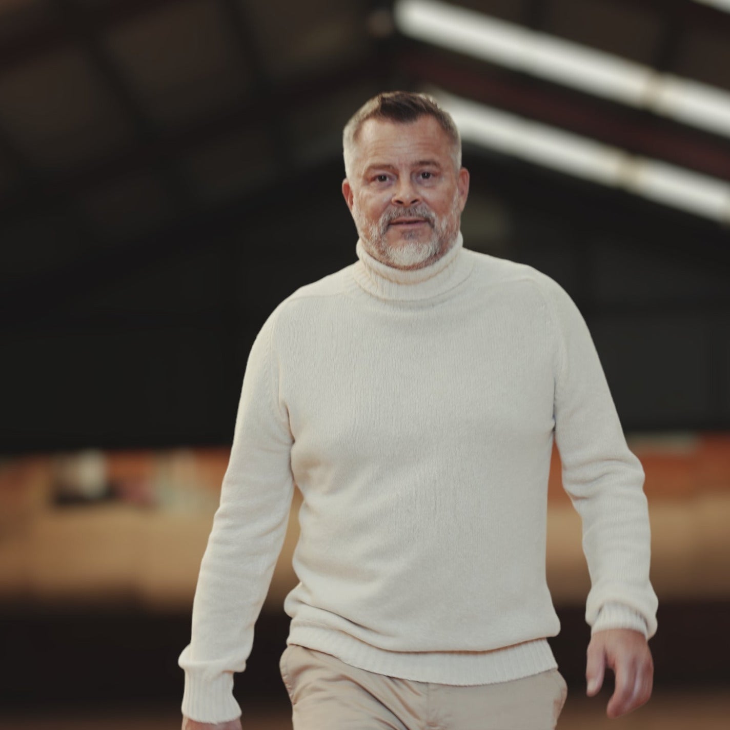 It's made from 1-ply yarn, which means it's on the thinner end of the knitting scale, and thus can fulfill our own dream: To wear it under a tweed blazer. The wool is the finest Geelong SuperFine lambswool from New Zealand, which can probably be described as merino wool's luxurious and durable cousin. The yarn has a slightly shorter fiber length and a small diameter, which contributes to the sweaters's incredible softness. To make it even softer, we have asked the knitwear manufacturer to make an "underwash", i.e. that the yarn has been spun a little less, but tumble-dried a little more than what is standard.