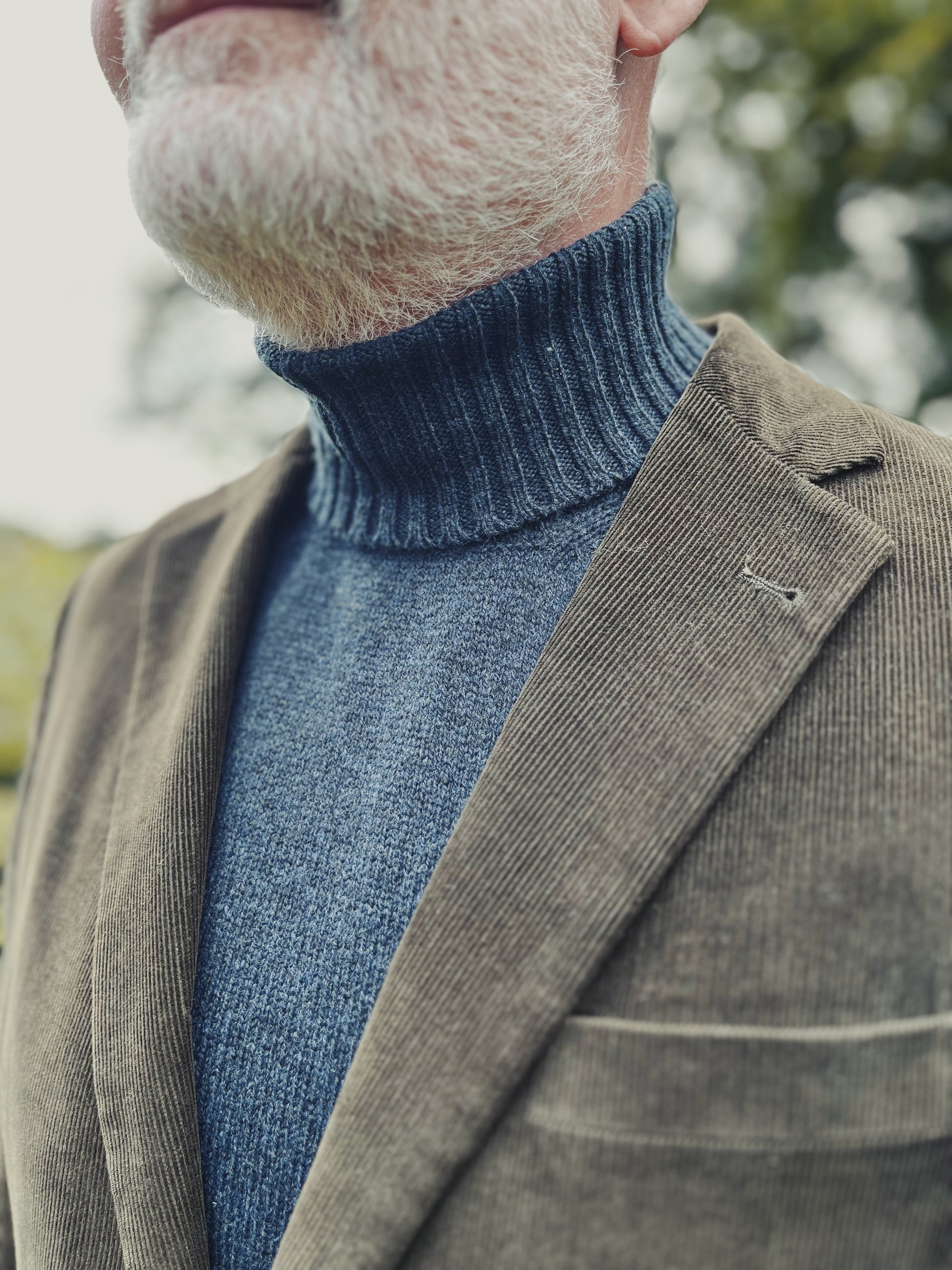 It's made from 1-ply yarn, which means it's on the thinner end of the knitting scale, and thus can fulfill our own dream: To wear it under a tweed blazer. The wool is the finest Geelong SuperFine lambswool from New Zealand, which can probably be described as merino wool's luxurious and durable cousin. The yarn has a slightly shorter fiber length and a small diameter, which contributes to the sweaters's incredible softness. To make it even softer, we have asked the knitwear manufacturer to make an "underwash", i.e. that the yarn has been spun a little less, but tumble-dried a little more than what is standard.