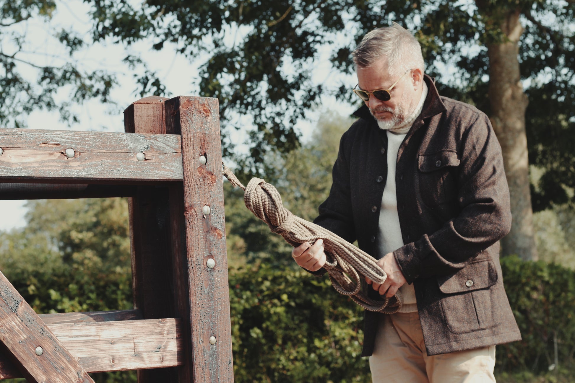 As the first, perhaps on all of Mother Earth, the new Danish clothing brand OLENE is now introducing a tweed shacket*. It is a casual style jacket that resembles the best of the safari jacket, tweed jacket and shirt. This unusual combination gives a surprisingly sporty elegant look that excites both us, our friends and others who have had a sneak peek.