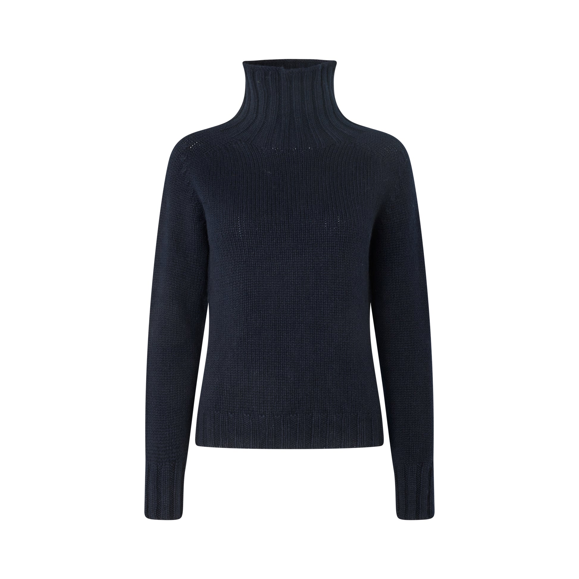 Glencoe Ladies Roll Neck Sweater, Nero Navy, Geelong lambswool
